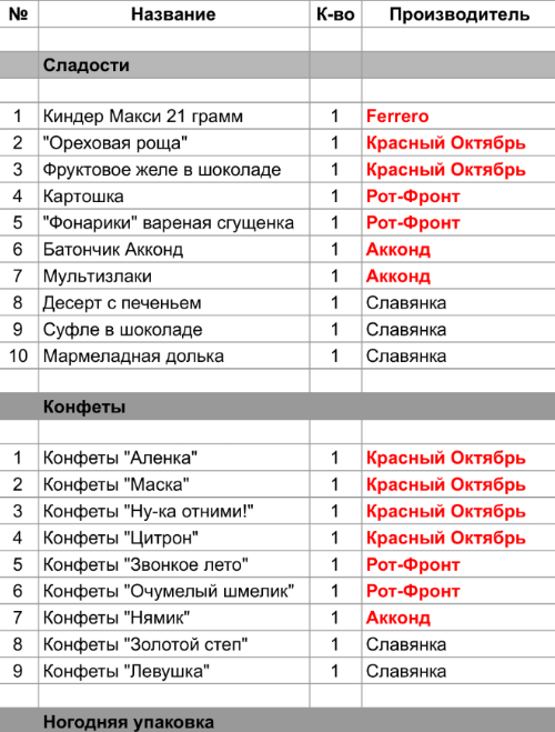 Картошка (1 шт), "Фонарики" вареная сгущенка (1 шт), Конфеты "Звонкое лето" (1 шт), Конфеты "Очумелый шмелик" (1 шт)